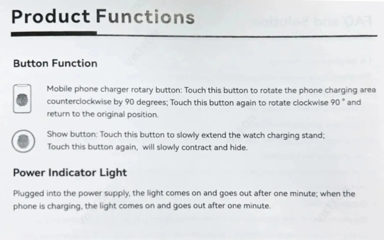 Show button: Touch this button to slowly extend the watch charging stand;Touch this button again, will slowly contract and hide.